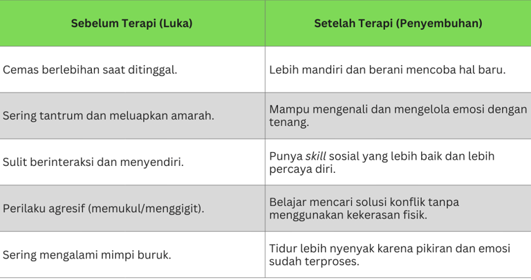 Tujuan Psikoterapi bukan hanya menghentikan tantrum, tapi membangun kekuatan emosi anak. Berikut adalah beberapa hasil nyata yang sering kami lihat pada anak yang menjalani terapi ini: