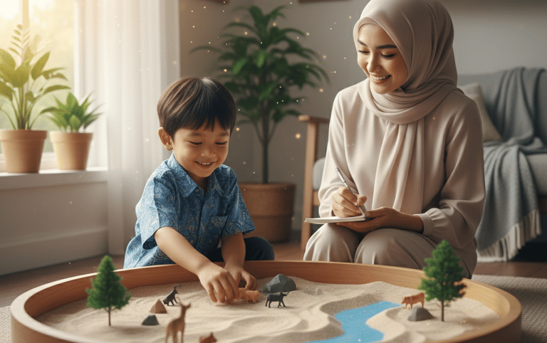 Melalui boneka, gambar, atau action figure, anak "menceritakan" masalah, ketakutan, atau luka yang mereka rasakan tanpa perlu mengeluarkan kata-kata yang sulit.