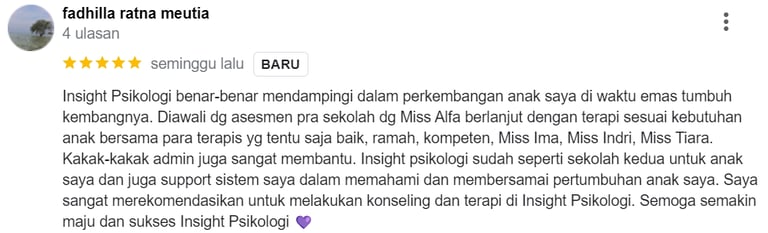 Kami tidak hanya memberikan tes, tapi memberikan Peta Jalan. Di Insight Psikologi, setiap laporan di-review langsung oleh Psikolog Berpengalaman Lulusan Terbaik Universitas di Indonesia & Luar Negeri. Hasilnya? Ayah/Bunda mendapatkan panduan praktis yang mudah diterapkan di rumah, tanpa bahasa yang rumit.